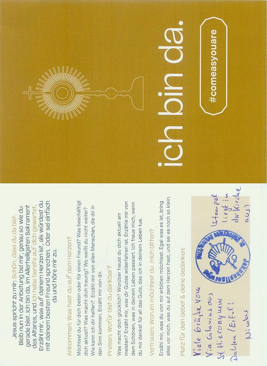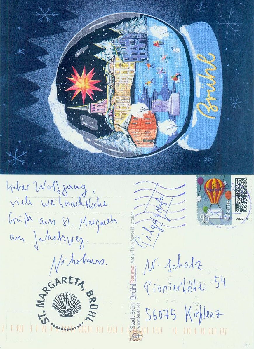 Manchmal bekomme ich liebe Post von Pilgern, die auf einem Jakosbweg unterwegs sind. Ich bin jedesmal sehr erfeut, wenn ich eine Postkarte im Briefkasten finde. Herzlichen Dank dafür.