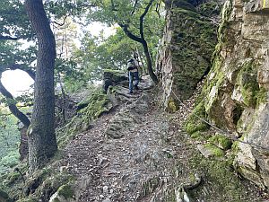 Aufgrund des Wetters waren die ansonsten herrlichen Aussichtspunkte am Vierseenblick und an Gereonseck nur eingetrübt genießbar - schade. Der folgende alpine Abstieg nach Boppard über den Felsenweg verlangte im Anschluss vollste Konzentration. Der Untergrund ist schon bei trockener Witterung eine Herausforderung und erwies sich heute durch die anhaltende Feuchte mehr als einmal rutschig. Ich kann deshalb immer wieder auf die im Buch beschriebenen Alternativen verweisen, die zwar etwas länger sind, aber sicherer.